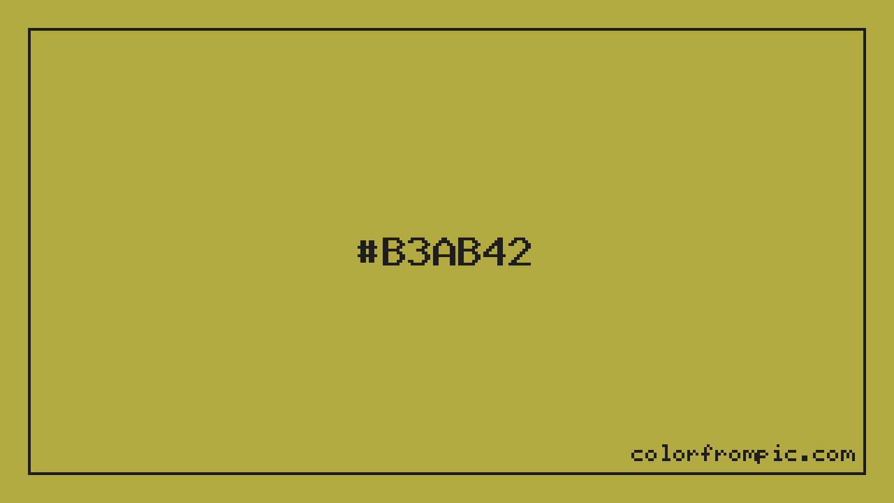 This color works well in various design contexts. With its medium lightness, it's versatile enough for both foreground elements and subtle backgrounds. The moderate to low saturation gives this color a sophisticated, muted quality that works well in professional and minimalist designs. When pairing #B3AB42 with other colors, consider its complementary color at hue 236° for maximum contrast, or use analogous colors within 30° of its hue for harmonious combinations. The decimal representation of this color is 11774786, which can be useful in certain programming contexts.