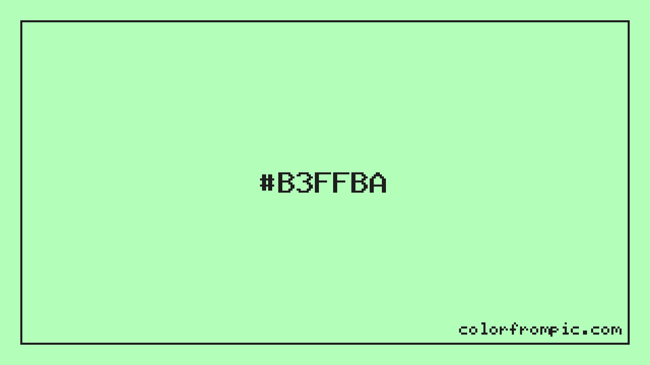 The HEX code for Light Vivid Emerald is #B3FFBA. In CSS you can use it directly as color: #B3FFBA; or as a background: background-color: #B3FFBA;. The three-character shorthand is not available for this color since it cannot be reduced without changing the value. Use the full six-character hex for accurate reproduction in any web or design project.