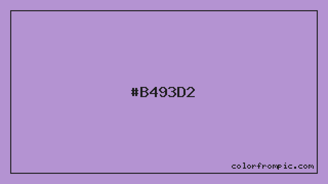 The approximate CMYK value of #B493D2 is C:14% M:30% Y:0% K:18%. CMYK (Cyan, Magenta, Yellow, Key/Black) is the color model used in physical printing. Unlike RGB which mixes light additively on screens, CMYK mixes inks subtractively on paper. Note that the RGB-to-CMYK conversion is an approximation — screen colors and print colors exist in different color gamuts, and some screen colors cannot be exactly reproduced in print. For precise print work, consult a professional print color profile or Pantone matching system.