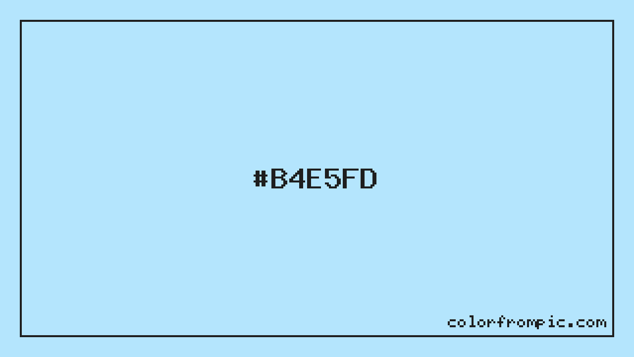 The hexadecimal color code #B4E5FD represents a very light shade in the cyan family. In the RGB color model, this color is composed of 180 red, 229 green, and 253 blue, which translates to approximately 71% red, 90% green, and 99% blue. This makes it a highly saturated color with cool undertones that can evoke different emotional responses depending on its application.