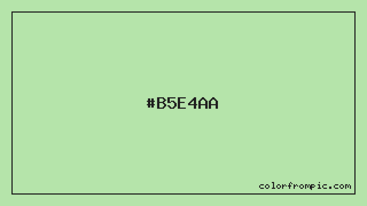 The HEX code for Light Cool Green is #B5E4AA. In CSS you can use it directly as color: #B5E4AA; or as a background: background-color: #B5E4AA;. The three-character shorthand is not available for this color since it cannot be reduced without changing the value. Use the full six-character hex for accurate reproduction in any web or design project.