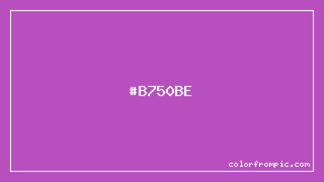 The HEX code for Purple is #B750BE. In CSS you can use it directly as color: #B750BE; or as a background: background-color: #B750BE;. The three-character shorthand is not available for this color since it cannot be reduced without changing the value. Use the full six-character hex for accurate reproduction in any web or design project.