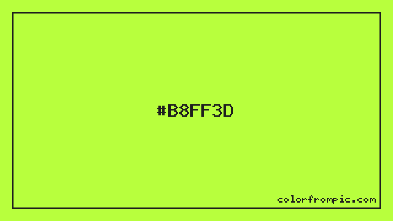 The hexadecimal color code #B8FF3D represents a light shade in the yellow family. In the RGB color model, this color is composed of 184 red, 255 green, and 61 blue, which translates to approximately 72% red, 100% green, and 24% blue. This makes it a highly saturated color with cool undertones that can evoke different emotional responses depending on its application.