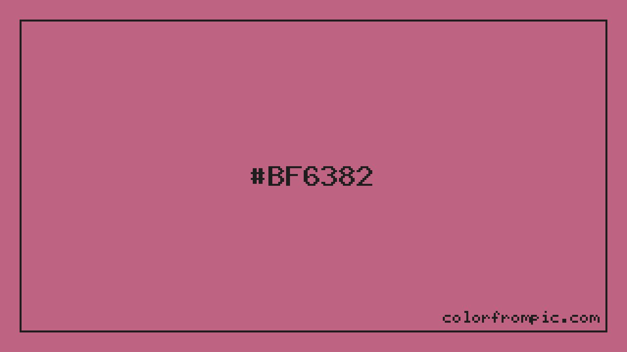 This color works well in various design contexts. With its medium lightness, it's versatile enough for both foreground elements and subtle backgrounds. The moderate to low saturation gives this color a sophisticated, muted quality that works well in professional and minimalist designs. When pairing #BF6382 with other colors, consider its complementary color at hue 160° for maximum contrast, or use analogous colors within 30° of its hue for harmonious combinations. The decimal representation of this color is 12542850, which can be useful in certain programming contexts.