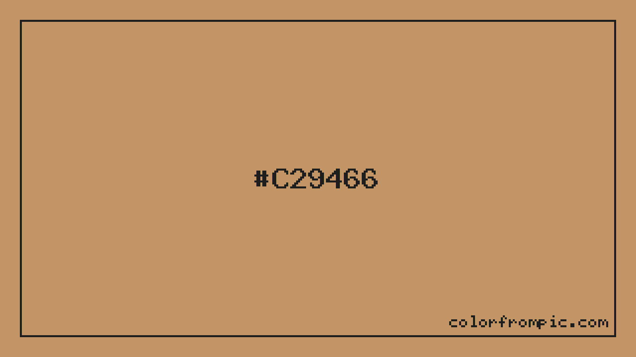 The approximate CMYK value of #C29466 is C:0% M:24% Y:47% K:24%. CMYK (Cyan, Magenta, Yellow, Key/Black) is the color model used in physical printing. Unlike RGB which mixes light additively on screens, CMYK mixes inks subtractively on paper. Note that the RGB-to-CMYK conversion is an approximation — screen colors and print colors exist in different color gamuts, and some screen colors cannot be exactly reproduced in print. For precise print work, consult a professional print color profile or Pantone matching system.