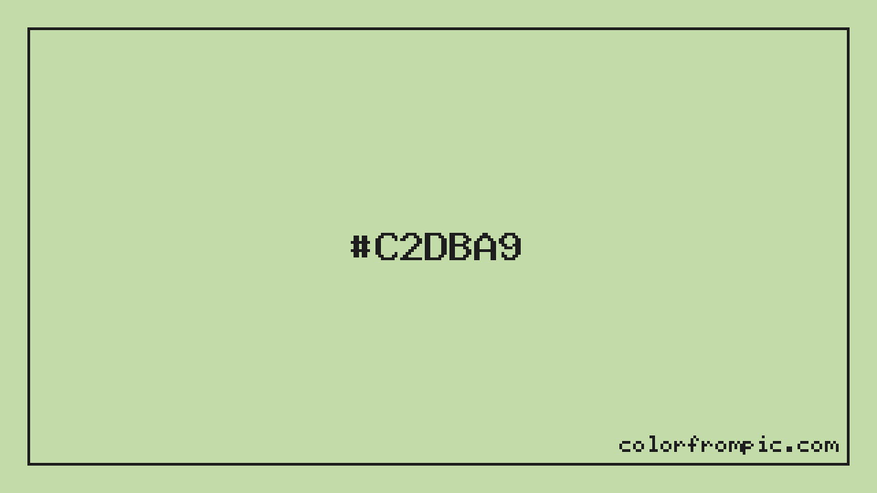 The approximate CMYK value of #C2DBA9 is C:11% M:0% Y:23% K:14%. CMYK (Cyan, Magenta, Yellow, Key/Black) is the color model used in physical printing. Unlike RGB which mixes light additively on screens, CMYK mixes inks subtractively on paper. Note that the RGB-to-CMYK conversion is an approximation — screen colors and print colors exist in different color gamuts, and some screen colors cannot be exactly reproduced in print. For precise print work, consult a professional print color profile or Pantone matching system.