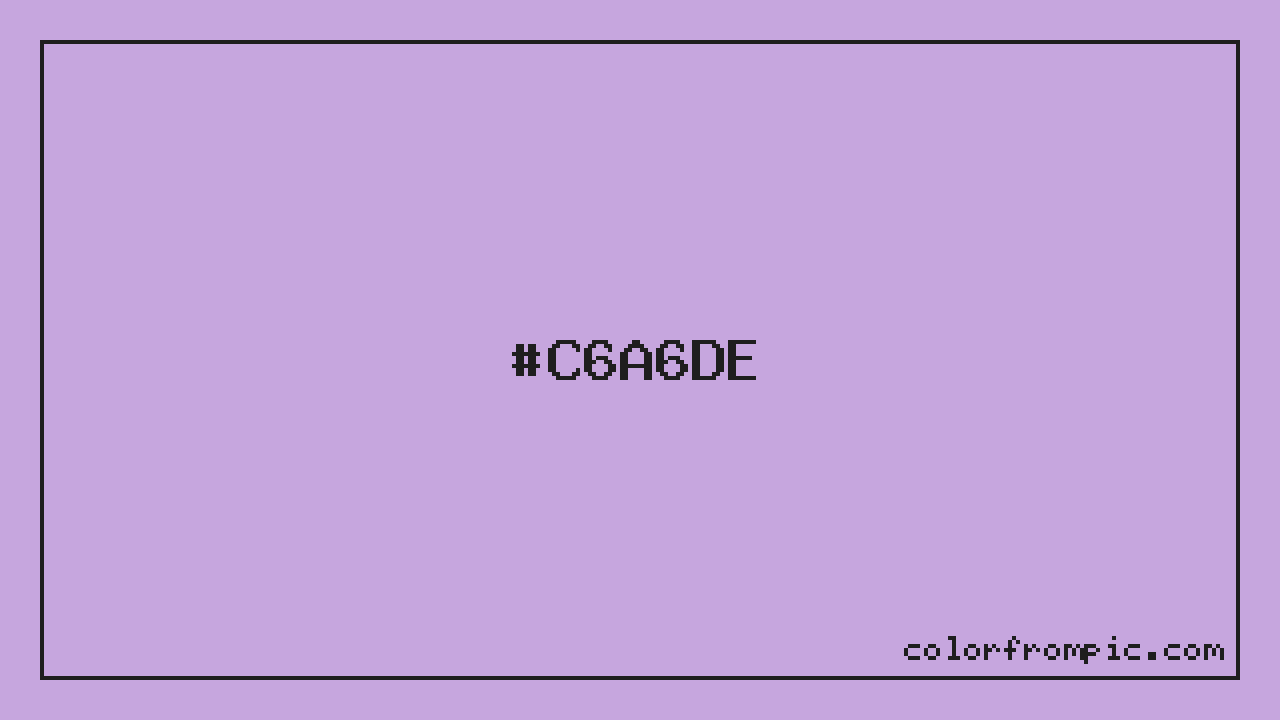 The HEX code for Light Violet is #C6A6DE. In CSS you can use it directly as color: #C6A6DE; or as a background: background-color: #C6A6DE;. The three-character shorthand is not available for this color since it cannot be reduced without changing the value. Use the full six-character hex for accurate reproduction in any web or design project.