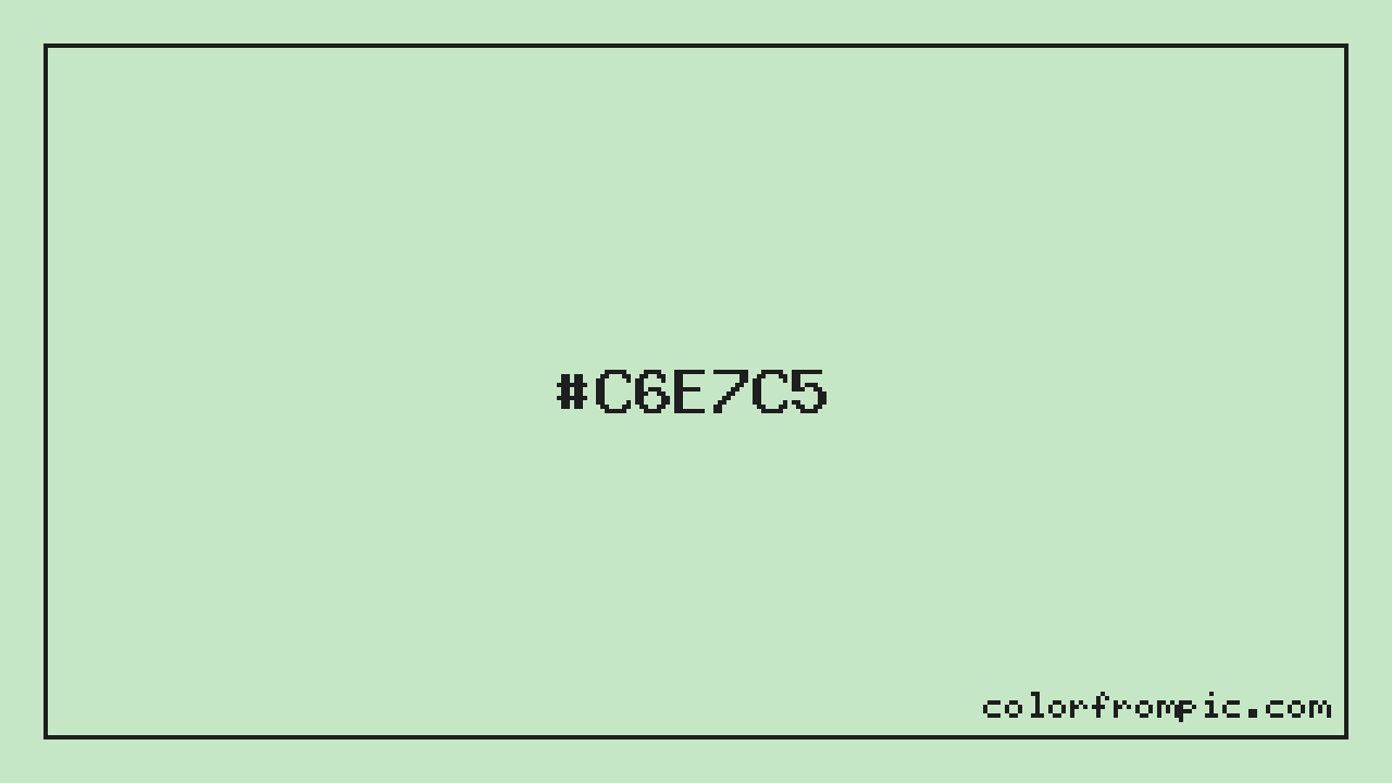 The HEX code for Light Green is #C6E7C5. In CSS you can use it directly as color: #C6E7C5; or as a background: background-color: #C6E7C5;. The three-character shorthand is not available for this color since it cannot be reduced without changing the value. Use the full six-character hex for accurate reproduction in any web or design project.