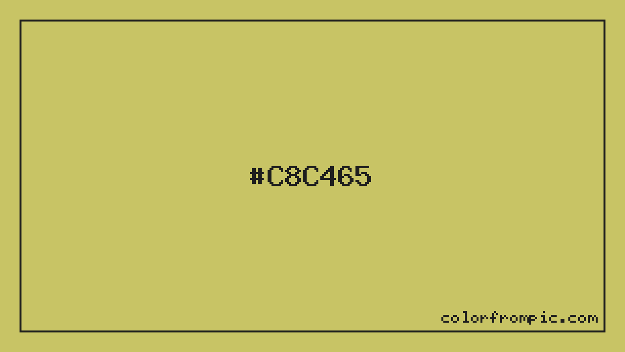 For print applications using the CMYK color model, #C8C465 would be reproduced using 0% cyan, 2% magenta, 50% yellow, and 22% black. The closest web-safe color is #CCCC66, which may be useful for ensuring compatibility across older displays and systems.