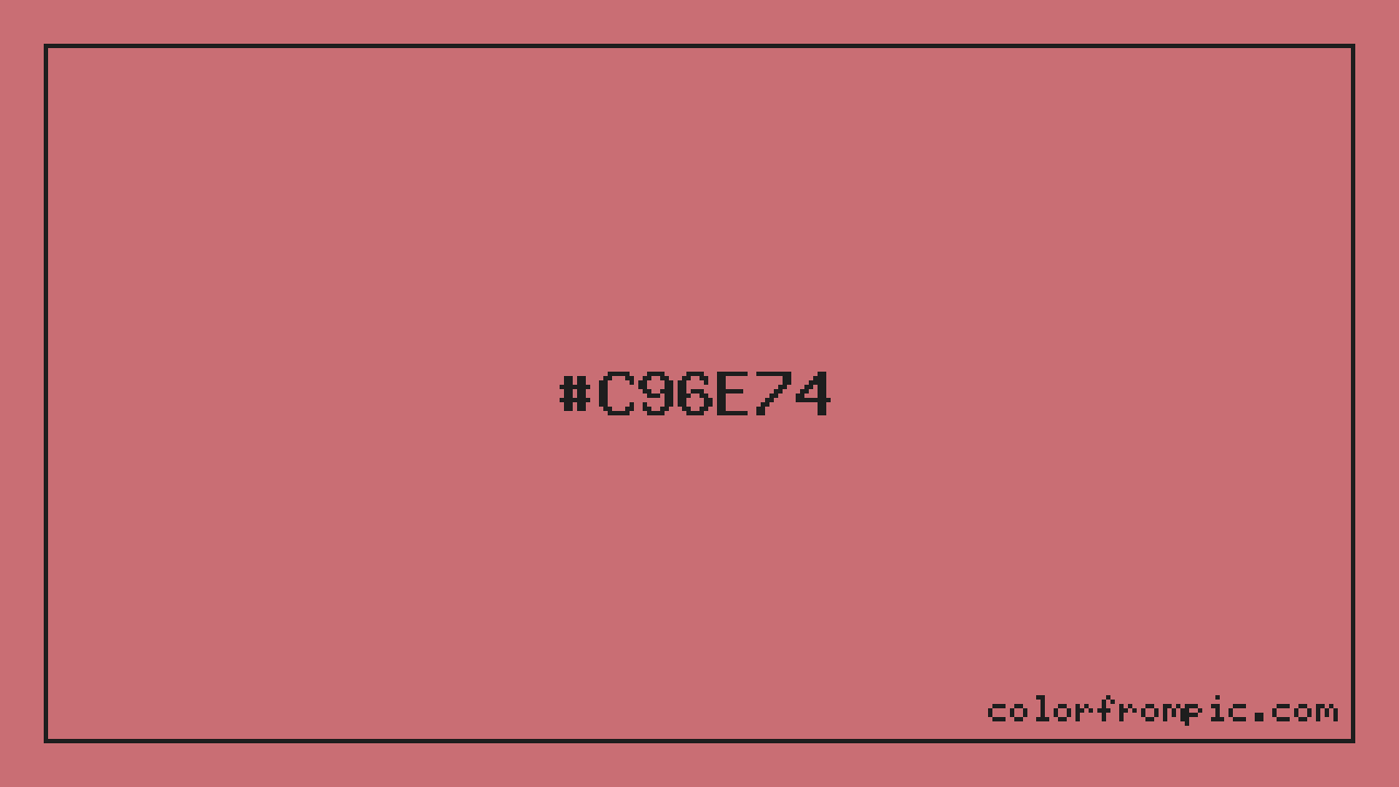 The approximate CMYK value of #C96E74 is C:0% M:45% Y:42% K:21%. CMYK (Cyan, Magenta, Yellow, Key/Black) is the color model used in physical printing. Unlike RGB which mixes light additively on screens, CMYK mixes inks subtractively on paper. Note that the RGB-to-CMYK conversion is an approximation — screen colors and print colors exist in different color gamuts, and some screen colors cannot be exactly reproduced in print. For precise print work, consult a professional print color profile or Pantone matching system.