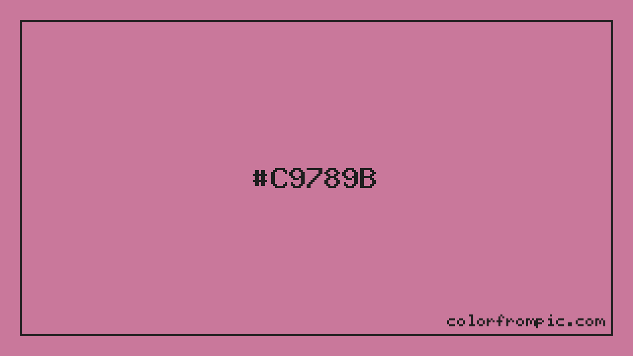 For print applications using the CMYK color model, #C9789B would be reproduced using 0% cyan, 40% magenta, 23% yellow, and 21% black. The closest web-safe color is #CC6699, which may be useful for ensuring compatibility across older displays and systems.