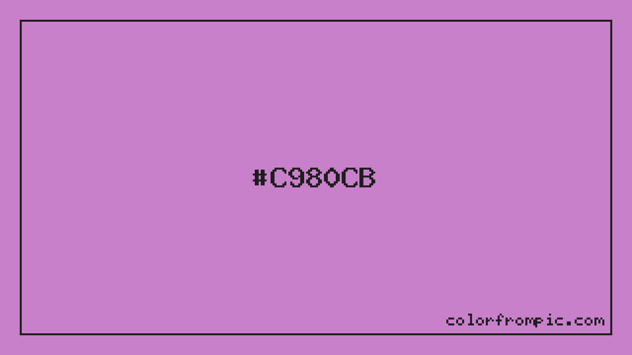 The RGB value of #C980CB is rgb(201, 128, 203). This means the color contains 201 out of 255 parts red, 128 out of 255 parts green, and 203 out of 255 parts blue. Red is the moderate channel in this color mix. You can use the full RGB function in any CSS property: color: rgb(201, 128, 203);