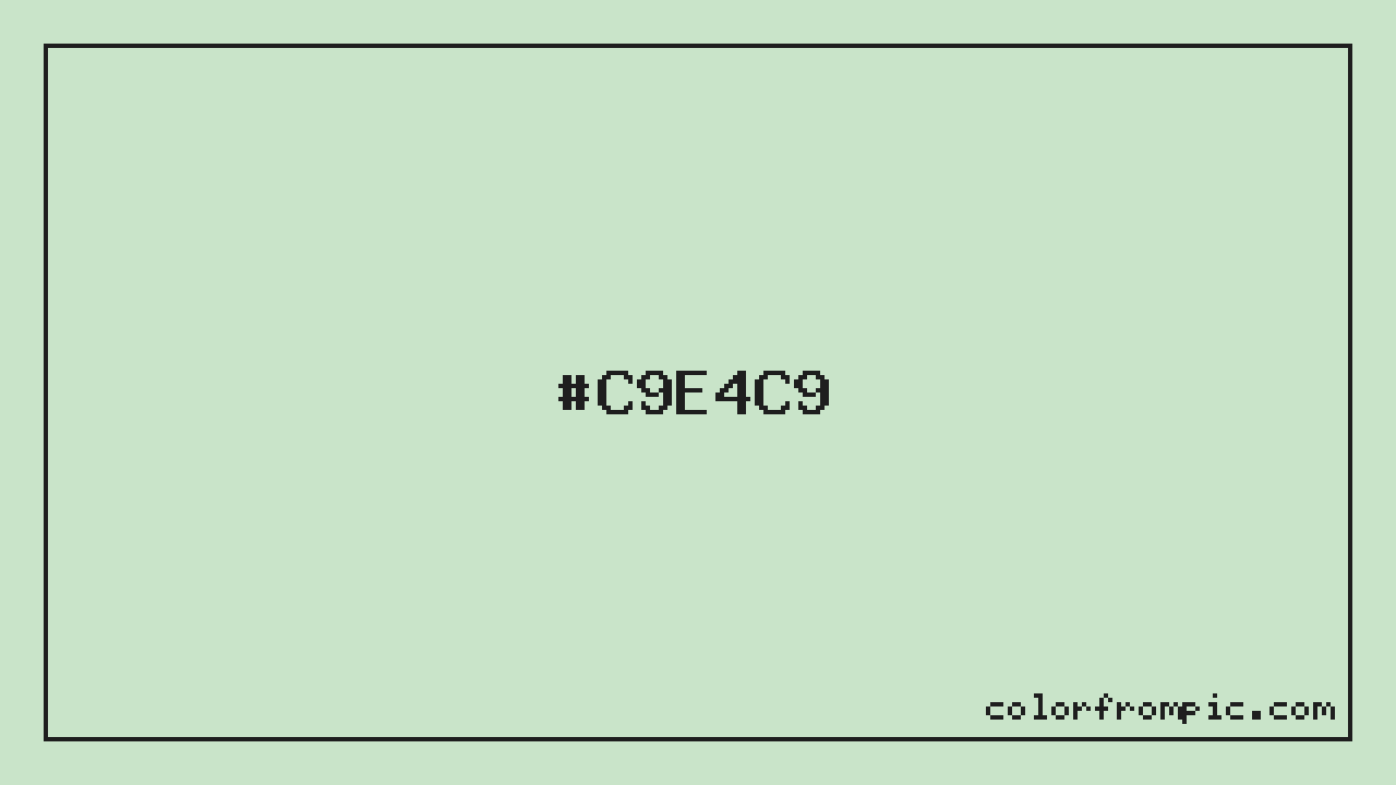 For print applications using the CMYK color model, #C9E4C9 would be reproduced using 12% cyan, 0% magenta, 12% yellow, and 11% black. The closest web-safe color is #CCCCCC, which may be useful for ensuring compatibility across older displays and systems.