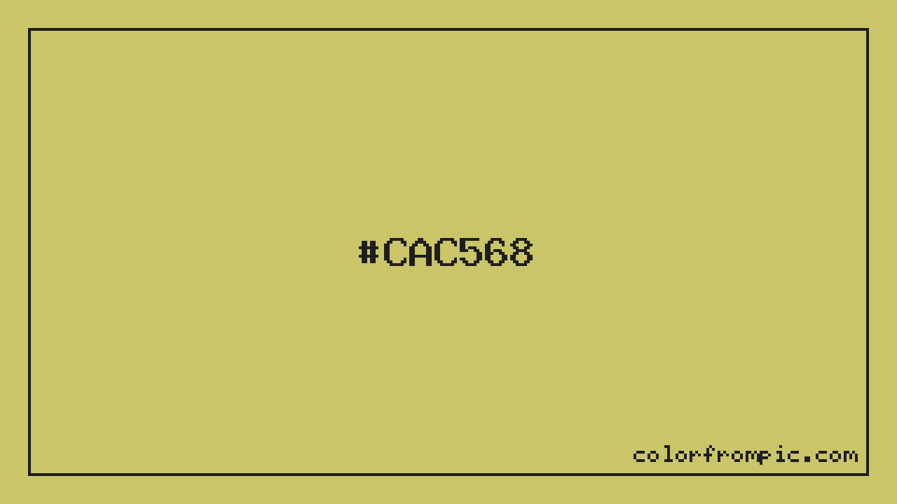 For print applications using the CMYK color model, #CAC568 would be reproduced using 0% cyan, 2% magenta, 49% yellow, and 21% black. The closest web-safe color is #CCCC66, which may be useful for ensuring compatibility across older displays and systems.