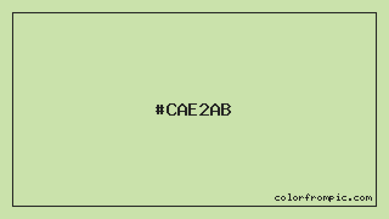 For print applications using the CMYK color model, #CAE2AB would be reproduced using 11% cyan, 0% magenta, 24% yellow, and 11% black. The closest web-safe color is #CCCC99, which may be useful for ensuring compatibility across older displays and systems.