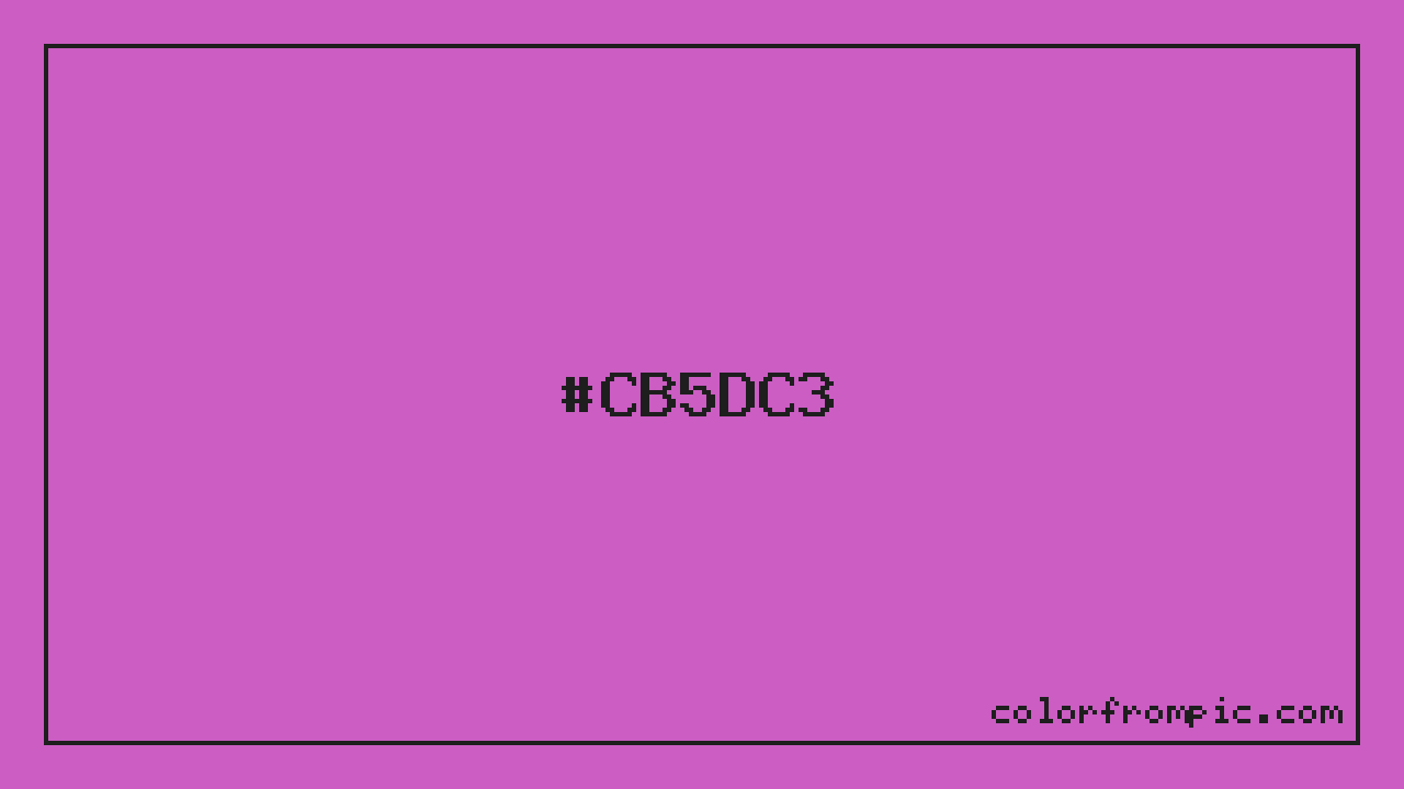This color works well in various design contexts. With its medium lightness, it's versatile enough for both foreground elements and subtle backgrounds. The moderate to low saturation gives this color a sophisticated, muted quality that works well in professional and minimalist designs. When pairing #CB5DC3 with other colors, consider its complementary color at hue 124° for maximum contrast, or use analogous colors within 30° of its hue for harmonious combinations. The decimal representation of this color is 13327811, which can be useful in certain programming contexts.
