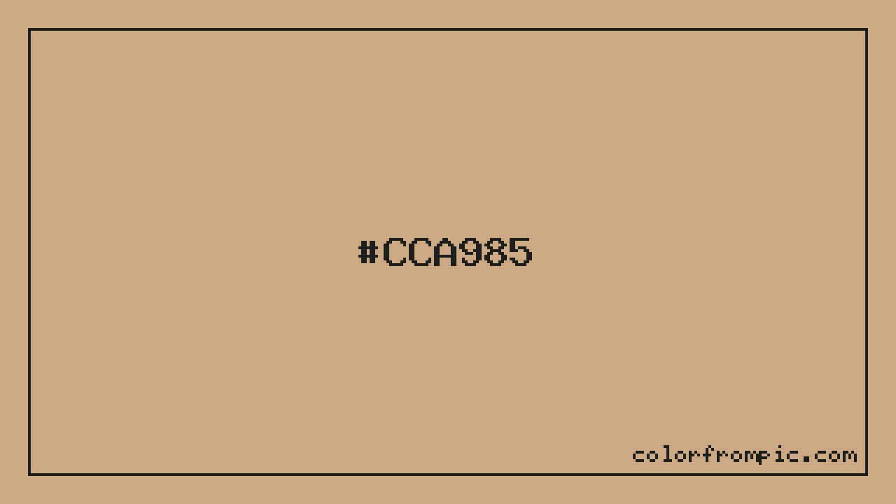 For print applications using the CMYK color model, #CCA985 would be reproduced using 0% cyan, 17% magenta, 35% yellow, and 20% black. The closest web-safe color is #CC9999, which may be useful for ensuring compatibility across older displays and systems.