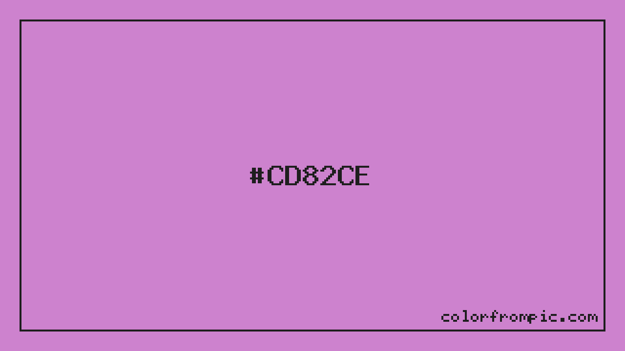 This color works well in various design contexts. With its medium lightness, it's versatile enough for both foreground elements and subtle backgrounds. The moderate to low saturation gives this color a sophisticated, muted quality that works well in professional and minimalist designs. When pairing #CD82CE with other colors, consider its complementary color at hue 119° for maximum contrast, or use analogous colors within 30° of its hue for harmonious combinations. The decimal representation of this color is 13468366, which can be useful in certain programming contexts.