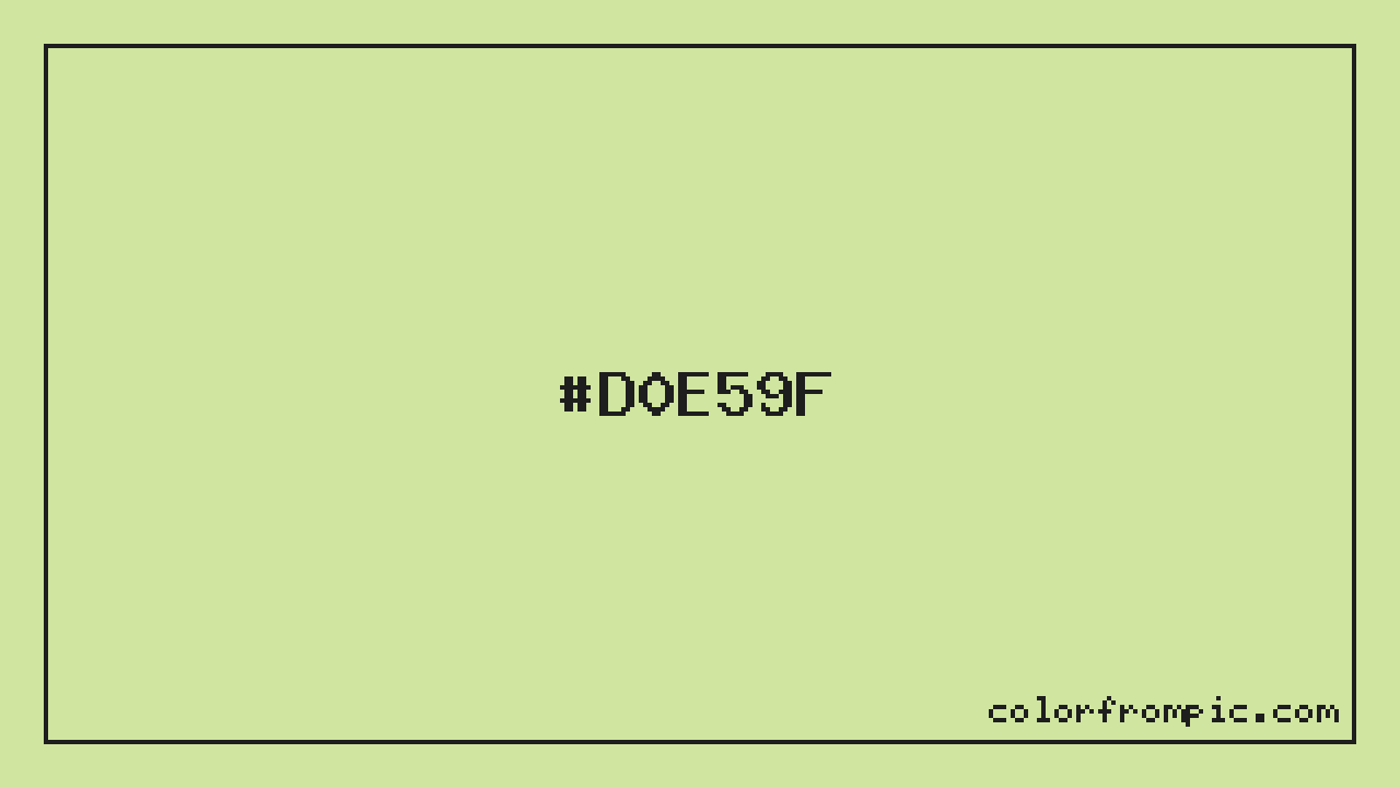 The HEX code for Light Cool Chartreuse is #D0E59F. In CSS you can use it directly as color: #D0E59F; or as a background: background-color: #D0E59F;. The three-character shorthand is not available for this color since it cannot be reduced without changing the value. Use the full six-character hex for accurate reproduction in any web or design project.