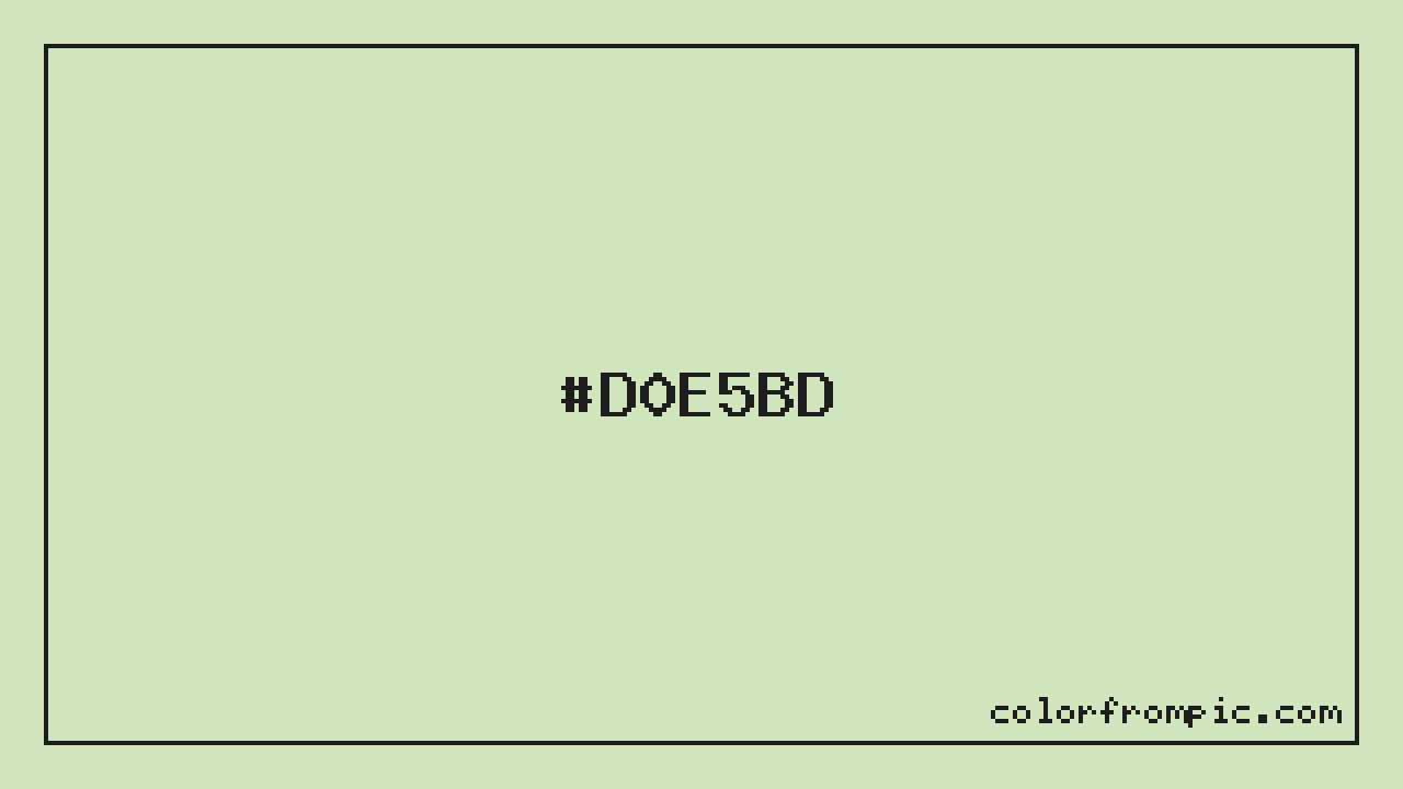 The hexadecimal color code #D0E5BD represents a very light shade in the green family. In the RGB color model, this color is composed of 208 red, 229 green, and 189 blue, which translates to approximately 82% red, 90% green, and 74% blue. This makes it a slightly desaturated color with cool undertones that can evoke different emotional responses depending on its application.