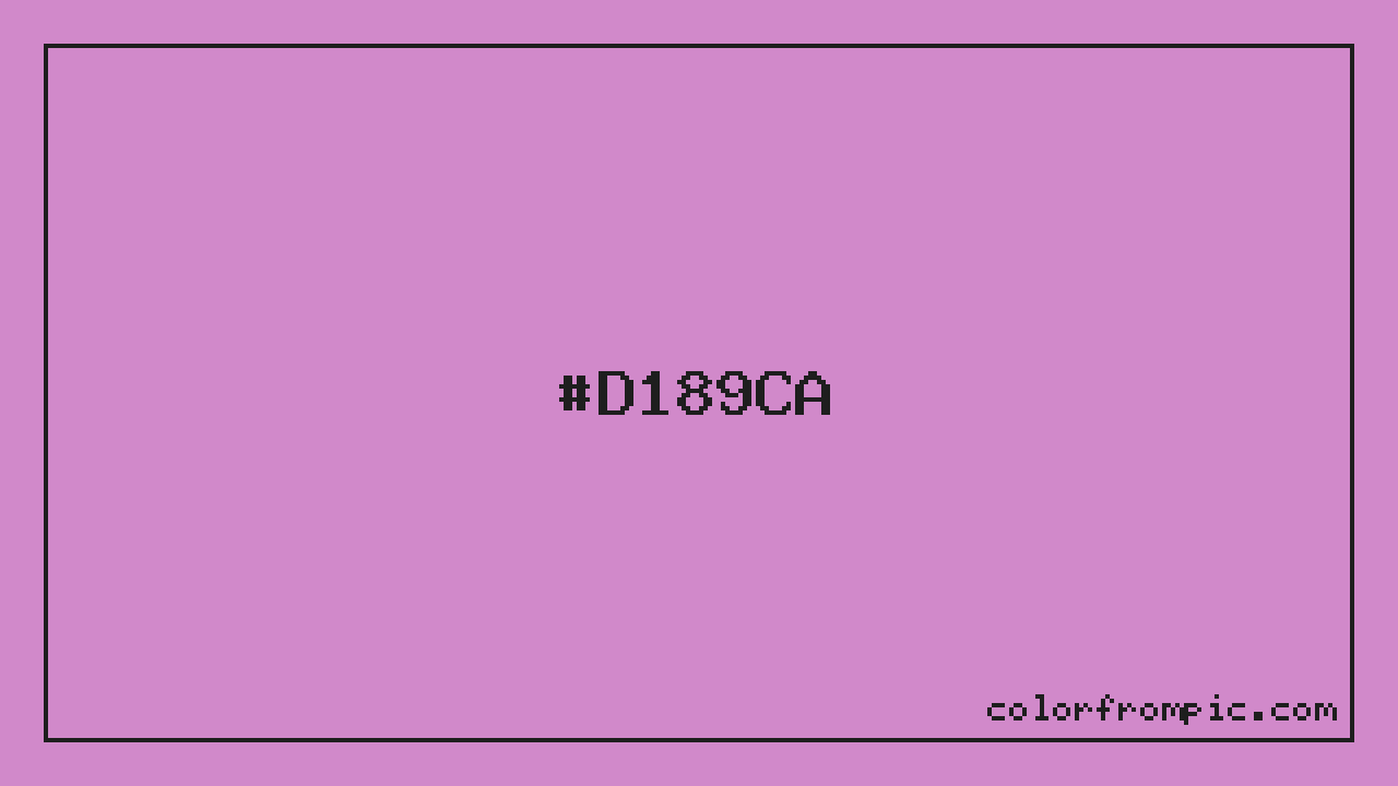 This color works well in various design contexts. With its medium lightness, it's versatile enough for both foreground elements and subtle backgrounds. The moderate to low saturation gives this color a sophisticated, muted quality that works well in professional and minimalist designs. When pairing #D189CA with other colors, consider its complementary color at hue 126° for maximum contrast, or use analogous colors within 30° of its hue for harmonious combinations. The decimal representation of this color is 13732298, which can be useful in certain programming contexts.
