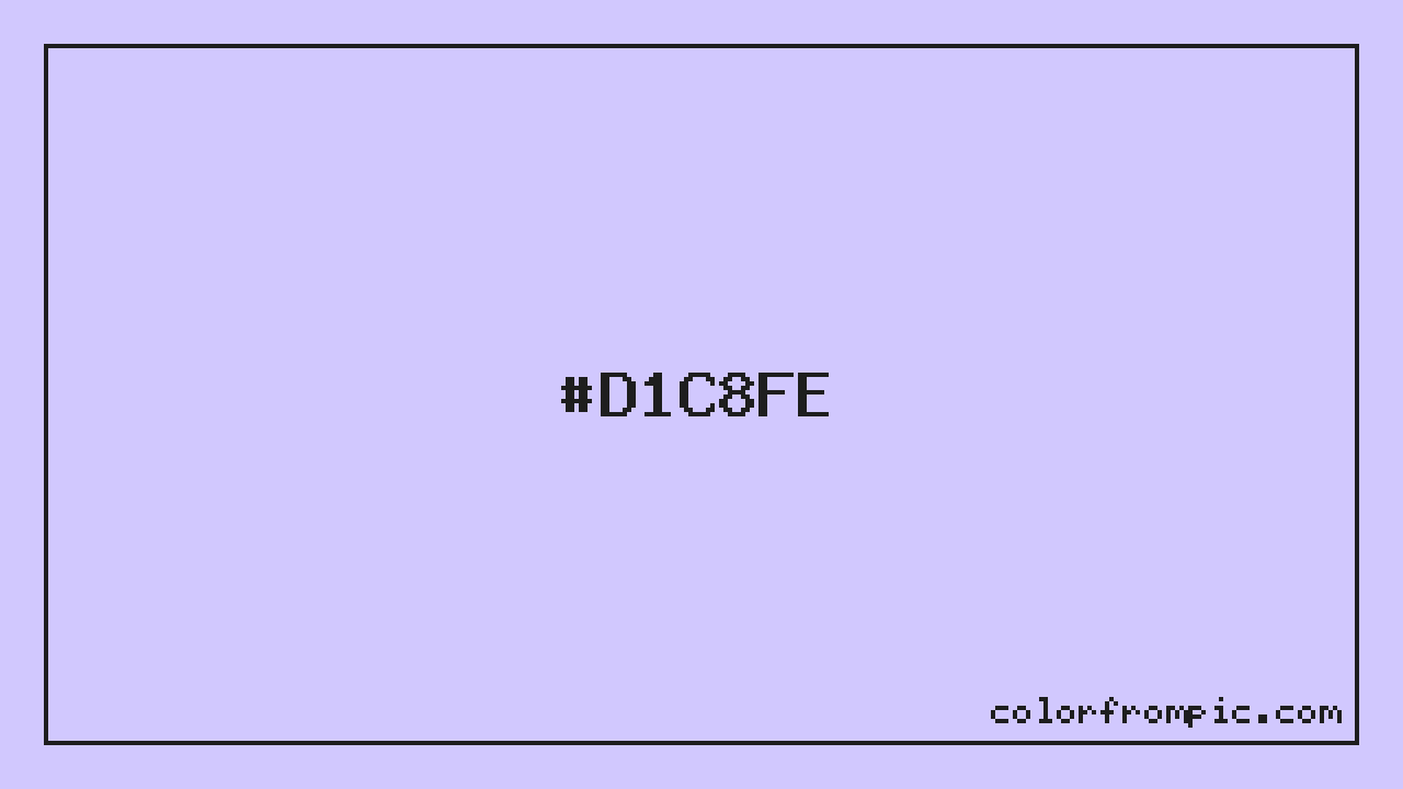 The HEX code for Light Vivid Violet is #D1C8FE. In CSS you can use it directly as color: #D1C8FE; or as a background: background-color: #D1C8FE;. The three-character shorthand is not available for this color since it cannot be reduced without changing the value. Use the full six-character hex for accurate reproduction in any web or design project.