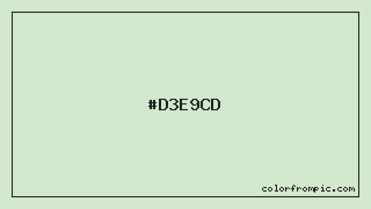 The hexadecimal color code #D3E9CD represents a very light shade in the green family. In the RGB color model, this color is composed of 211 red, 233 green, and 205 blue, which translates to approximately 83% red, 91% green, and 80% blue. This makes it a slightly desaturated color with cool undertones that can evoke different emotional responses depending on its application.