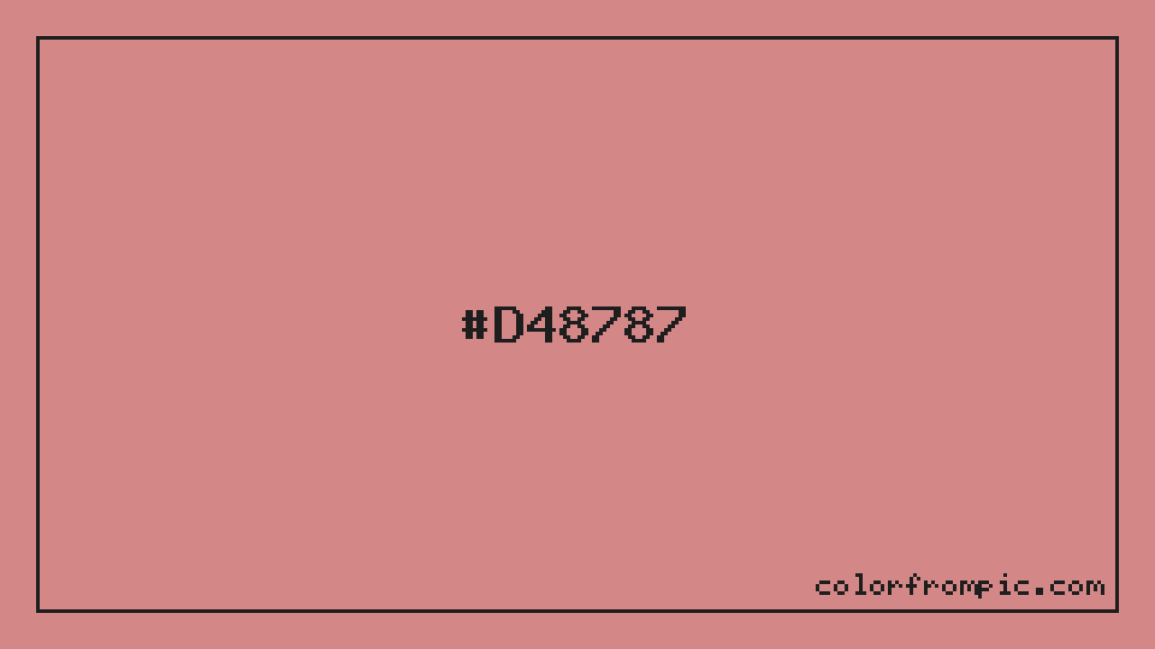 This color works well in various design contexts. With its medium lightness, it's versatile enough for both foreground elements and subtle backgrounds. The moderate to low saturation gives this color a sophisticated, muted quality that works well in professional and minimalist designs. When pairing #D48787 with other colors, consider its complementary color at hue 180° for maximum contrast, or use analogous colors within 30° of its hue for harmonious combinations. The decimal representation of this color is 13928327, which can be useful in certain programming contexts.