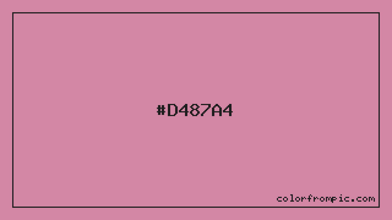 For print applications using the CMYK color model, #D487A4 would be reproduced using 0% cyan, 36% magenta, 23% yellow, and 17% black. The closest web-safe color is #CC9999, which may be useful for ensuring compatibility across older displays and systems.