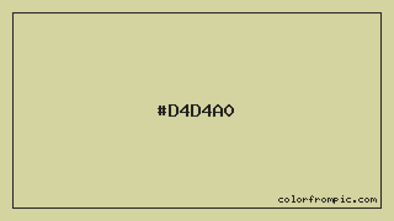 For print applications using the CMYK color model, #D4D4A0 would be reproduced using 0% cyan, 0% magenta, 25% yellow, and 17% black. The closest web-safe color is #CCCC99, which may be useful for ensuring compatibility across older displays and systems.