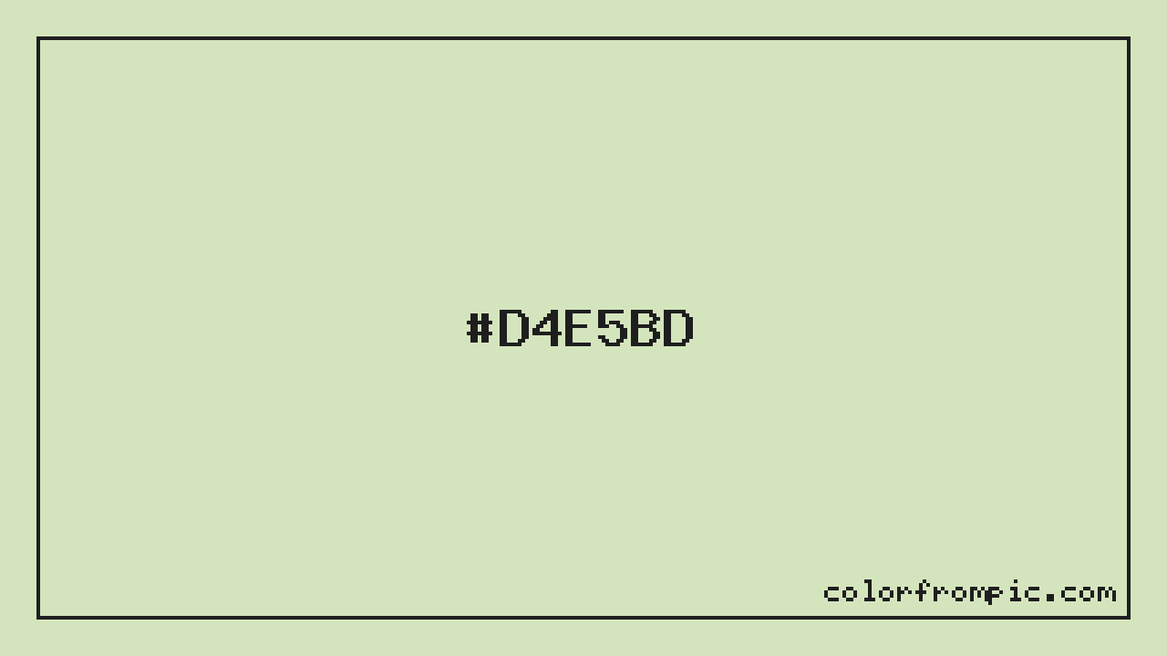 The hexadecimal color code #D4E5BD represents a very light shade in the yellow family. In the RGB color model, this color is composed of 212 red, 229 green, and 189 blue, which translates to approximately 83% red, 90% green, and 74% blue. This makes it a slightly desaturated color with cool undertones that can evoke different emotional responses depending on its application.