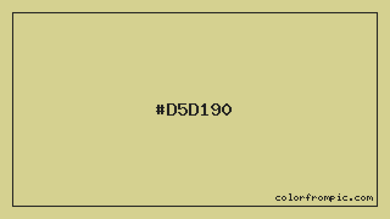For print applications using the CMYK color model, #D5D190 would be reproduced using 0% cyan, 2% magenta, 32% yellow, and 16% black. The closest web-safe color is #CCCC99, which may be useful for ensuring compatibility across older displays and systems.