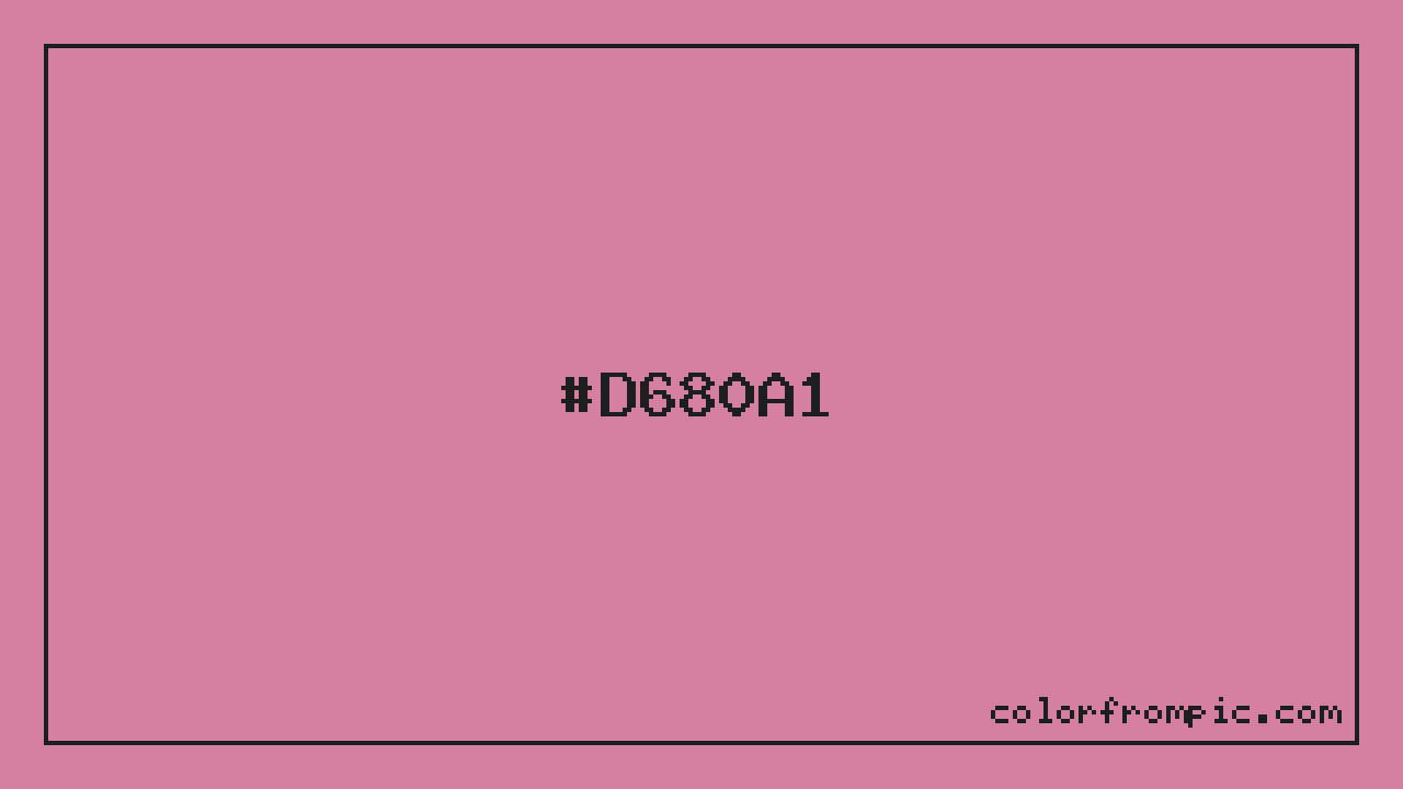 The approximate CMYK value of #D680A1 is C:0% M:40% Y:25% K:16%. CMYK (Cyan, Magenta, Yellow, Key/Black) is the color model used in physical printing. Unlike RGB which mixes light additively on screens, CMYK mixes inks subtractively on paper. Note that the RGB-to-CMYK conversion is an approximation — screen colors and print colors exist in different color gamuts, and some screen colors cannot be exactly reproduced in print. For precise print work, consult a professional print color profile or Pantone matching system.