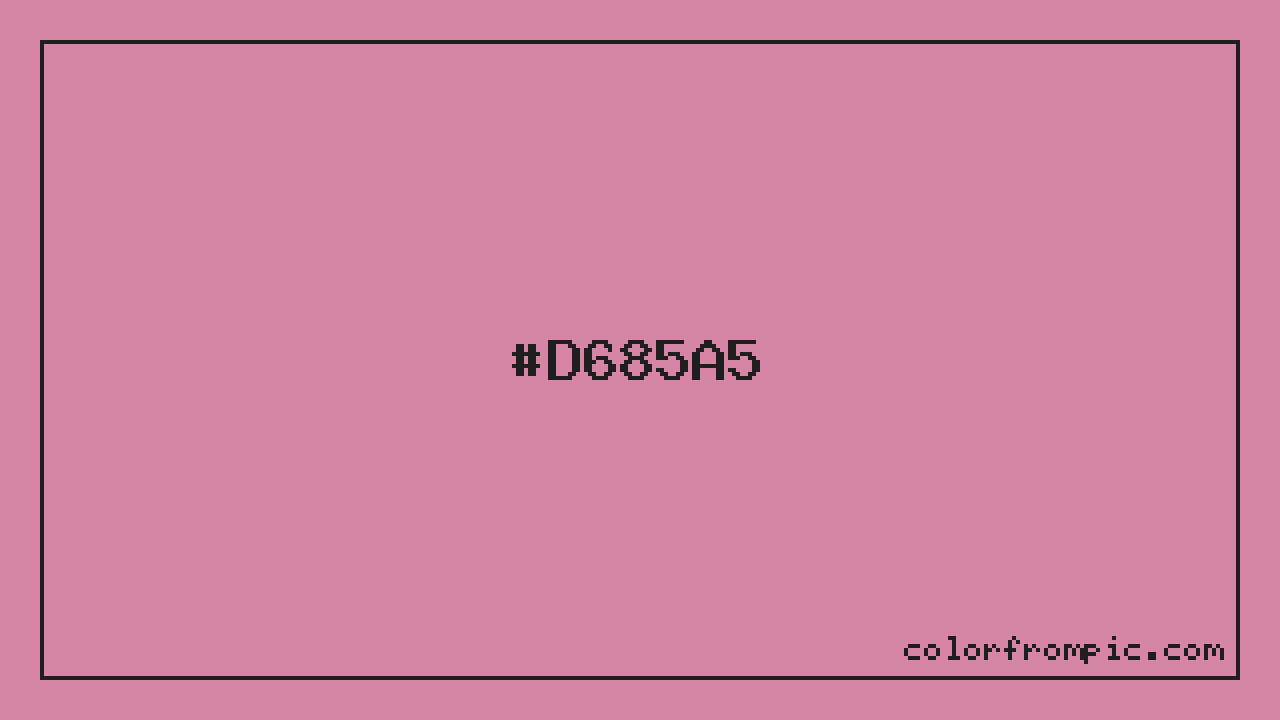 The HEX code for Soft Warm Magenta is #D685A5. In CSS you can use it directly as color: #D685A5; or as a background: background-color: #D685A5;. The three-character shorthand is not available for this color since it cannot be reduced without changing the value. Use the full six-character hex for accurate reproduction in any web or design project.