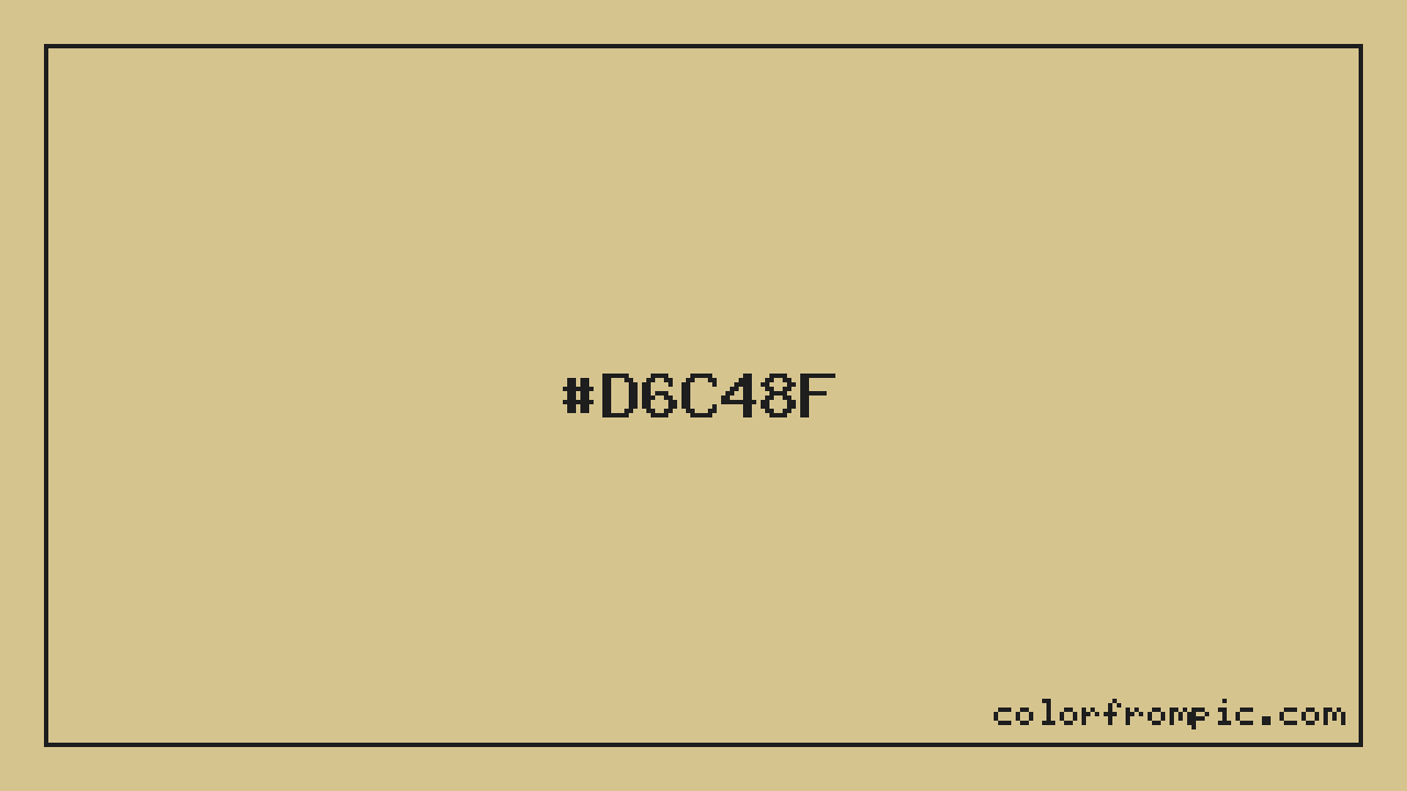 The approximate CMYK value of #D6C48F is C:0% M:8% Y:33% K:16%. CMYK (Cyan, Magenta, Yellow, Key/Black) is the color model used in physical printing. Unlike RGB which mixes light additively on screens, CMYK mixes inks subtractively on paper. Note that the RGB-to-CMYK conversion is an approximation — screen colors and print colors exist in different color gamuts, and some screen colors cannot be exactly reproduced in print. For precise print work, consult a professional print color profile or Pantone matching system.