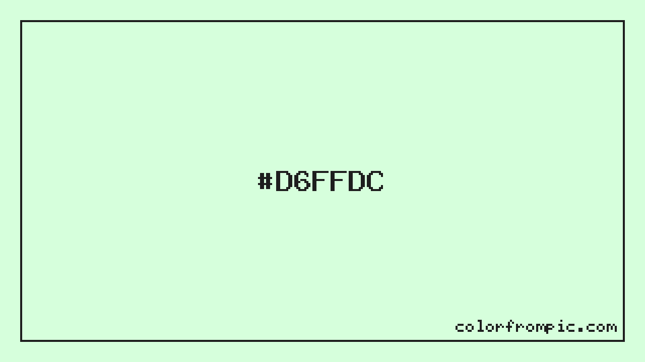 The HEX code for Very Light Vivid Emerald is #D6FFDC. In CSS you can use it directly as color: #D6FFDC; or as a background: background-color: #D6FFDC;. The three-character shorthand is not available for this color since it cannot be reduced without changing the value. Use the full six-character hex for accurate reproduction in any web or design project.