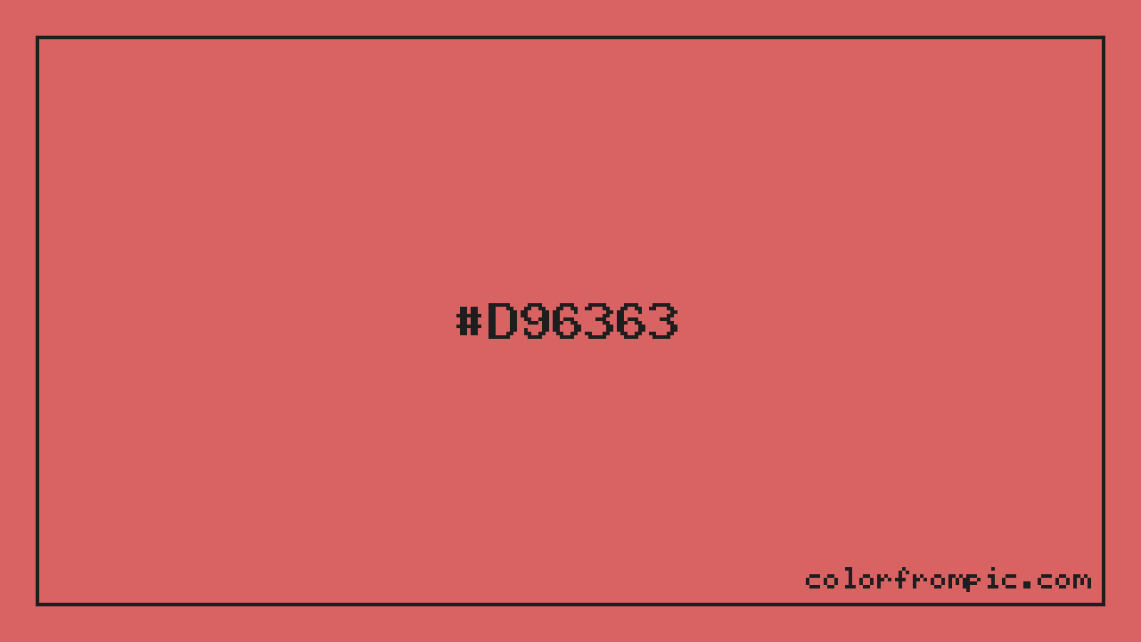 The hexadecimal color code #D96363 represents a light shade in the red family. In the RGB color model, this color is composed of 217 red, 99 green, and 99 blue, which translates to approximately 85% red, 39% green, and 39% blue. This makes it a moderately saturated color with warm undertones that can evoke different emotional responses depending on its application.