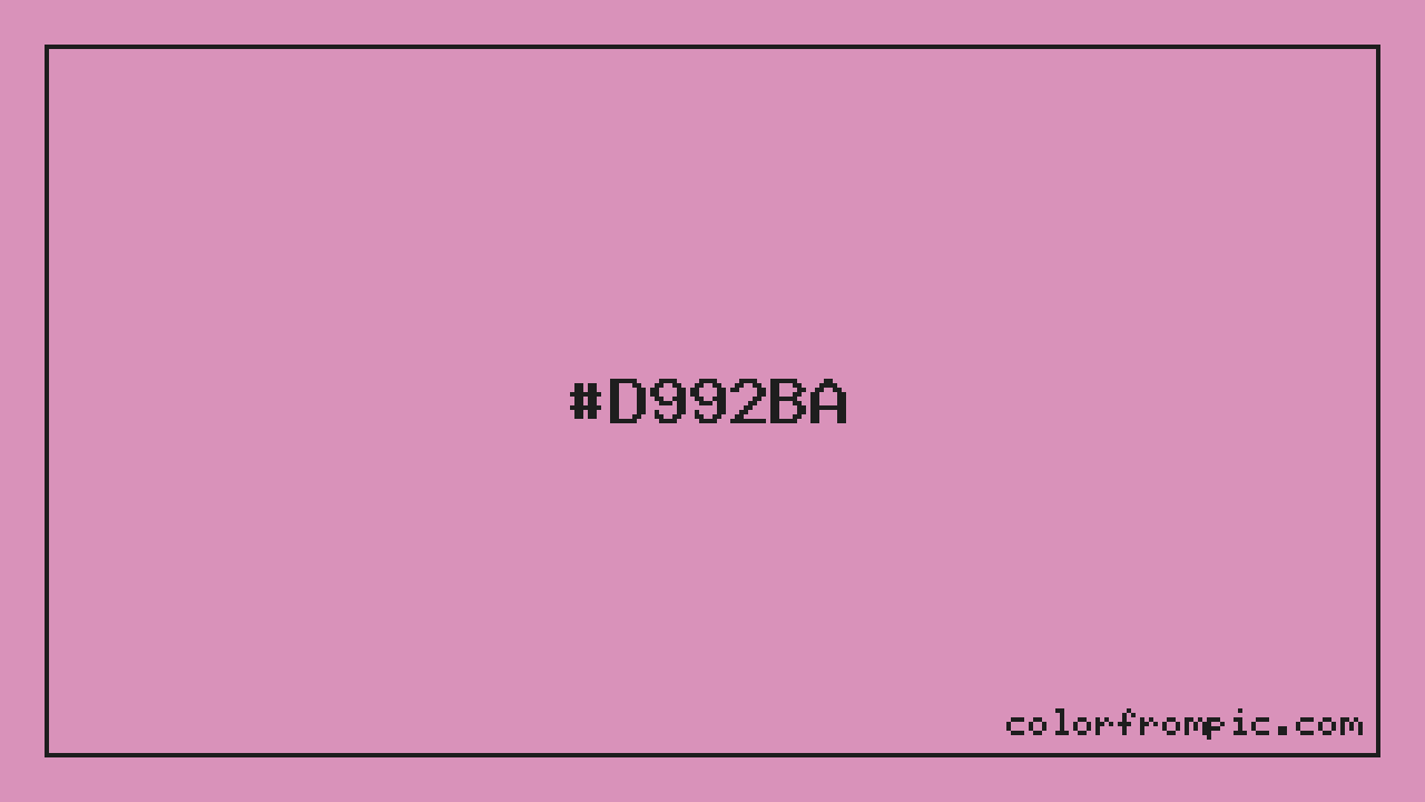 This color works well in various design contexts. As a lighter shade, it's excellent for backgrounds, negative space, and creating a sense of openness in designs. The moderate to low saturation gives this color a sophisticated, muted quality that works well in professional and minimalist designs. When pairing #D992BA with other colors, consider its complementary color at hue 146° for maximum contrast, or use analogous colors within 30° of its hue for harmonious combinations. The decimal representation of this color is 14258874, which can be useful in certain programming contexts.