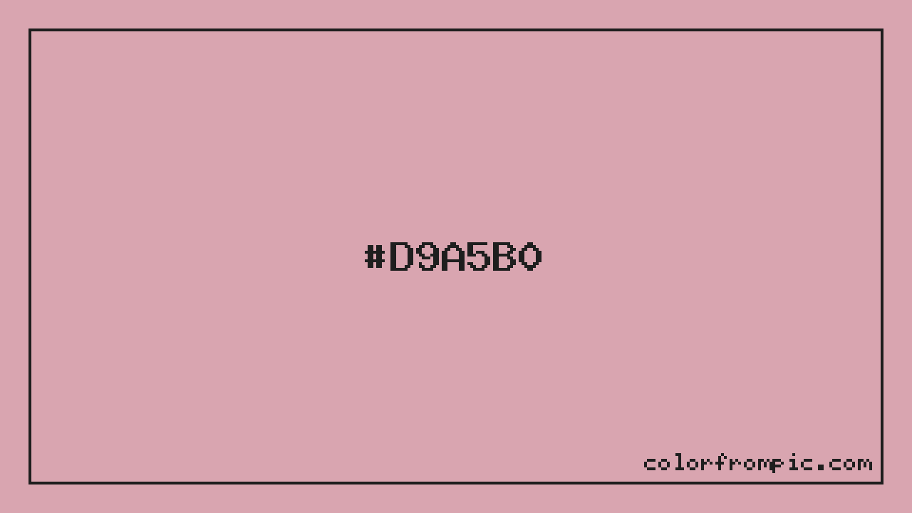 For print applications using the CMYK color model, #D9A5B0 would be reproduced using 0% cyan, 24% magenta, 19% yellow, and 15% black. The closest web-safe color is #CC9999, which may be useful for ensuring compatibility across older displays and systems.