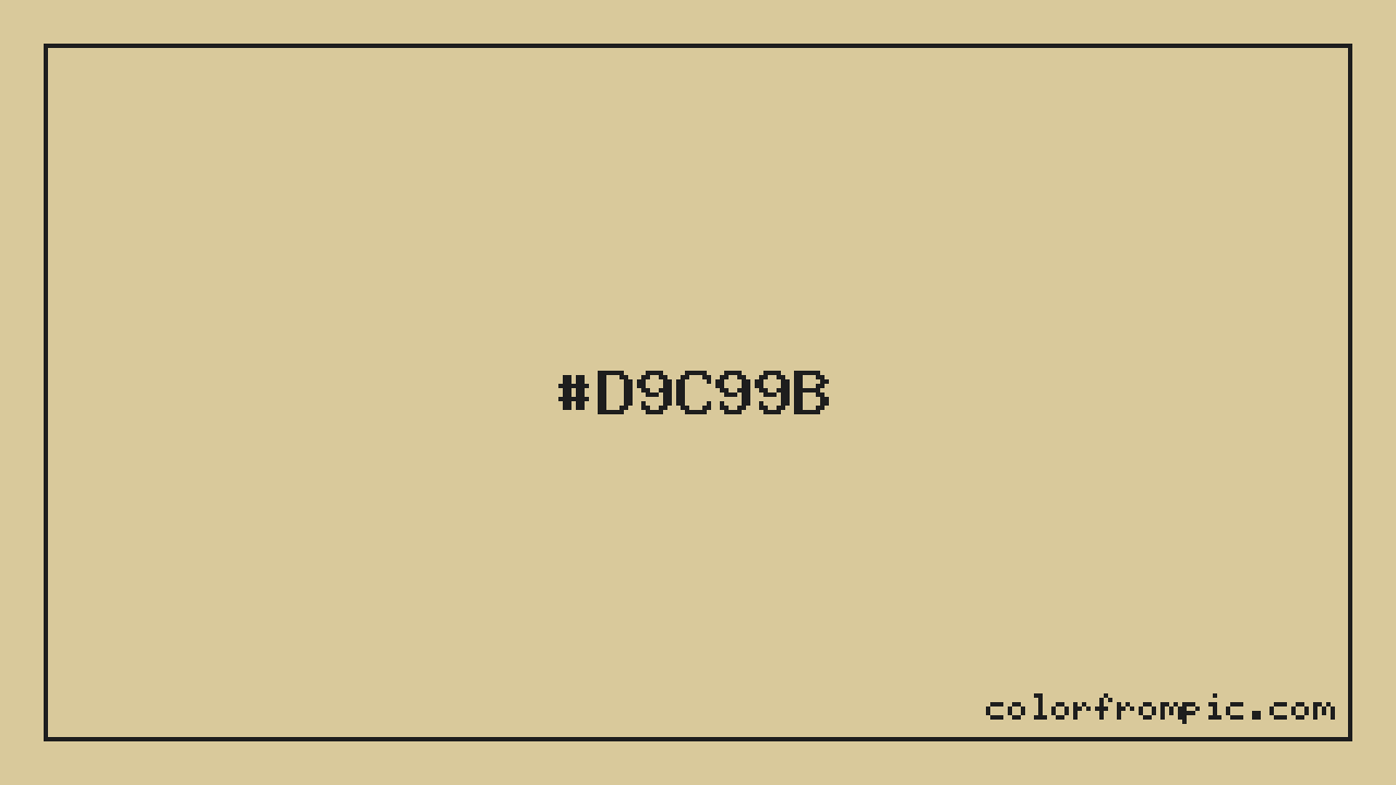For print applications using the CMYK color model, #D9C99B would be reproduced using 0% cyan, 7% magenta, 29% yellow, and 15% black. The closest web-safe color is #CCCC99, which may be useful for ensuring compatibility across older displays and systems.