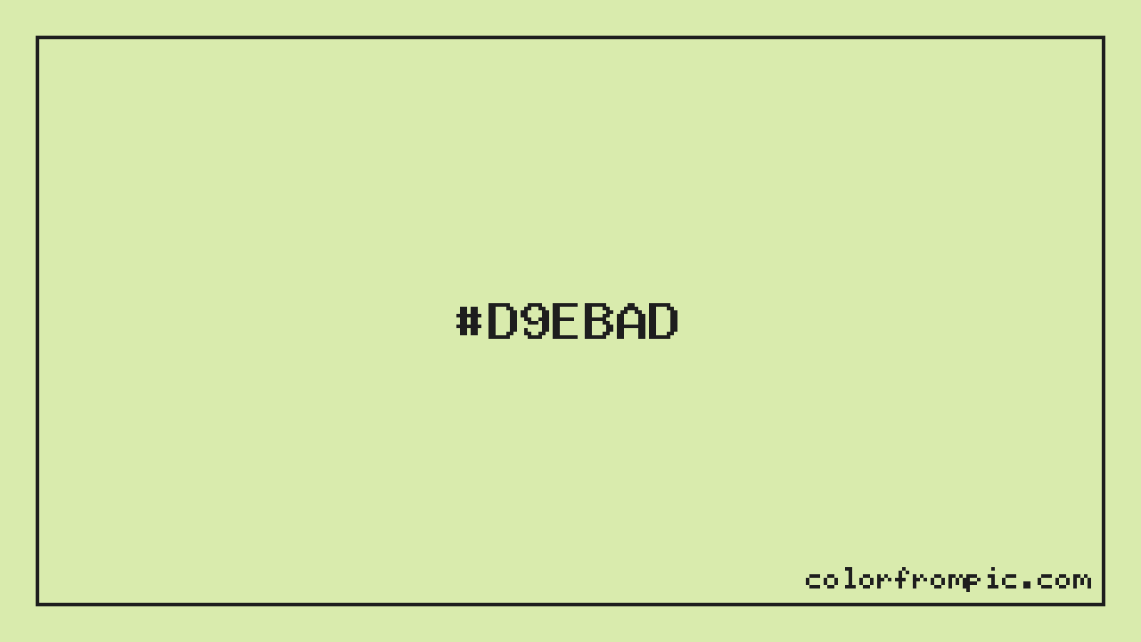 The hexadecimal color code #D9EBAD represents a light shade in the yellow family. In the RGB color model, this color is composed of 217 red, 235 green, and 173 blue, which translates to approximately 85% red, 92% green, and 68% blue. This makes it a moderately saturated color with cool undertones that can evoke different emotional responses depending on its application.