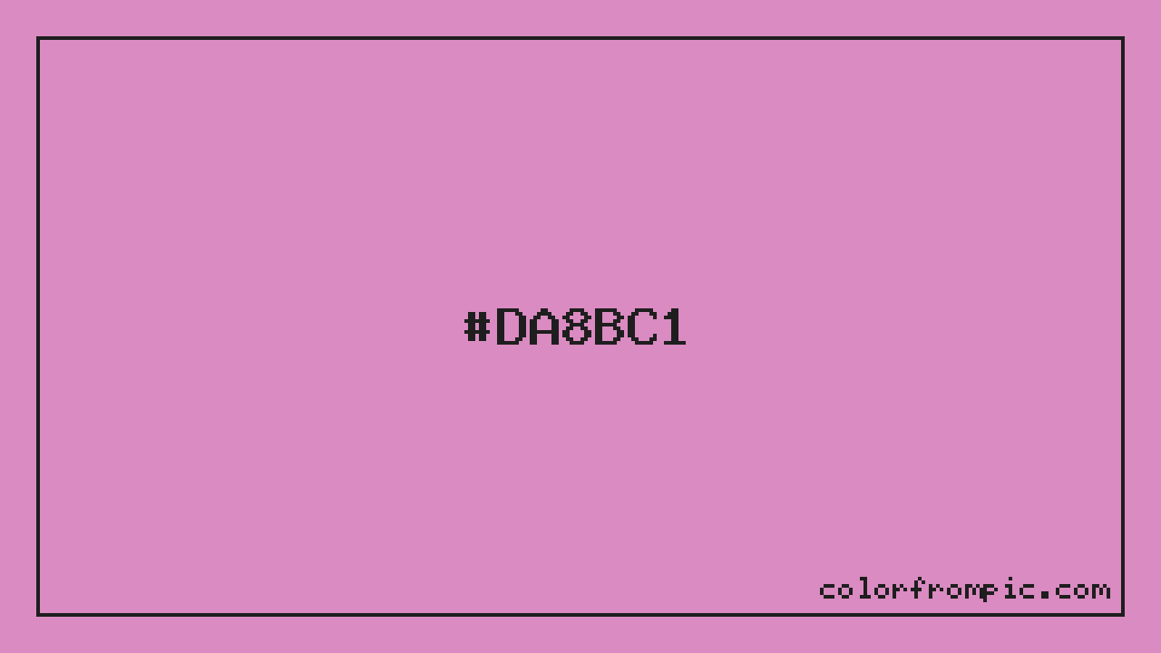 This color works well in various design contexts. With its medium lightness, it's versatile enough for both foreground elements and subtle backgrounds. The moderate to low saturation gives this color a sophisticated, muted quality that works well in professional and minimalist designs. When pairing #DA8BC1 with other colors, consider its complementary color at hue 139° for maximum contrast, or use analogous colors within 30° of its hue for harmonious combinations. The decimal representation of this color is 14322625, which can be useful in certain programming contexts.