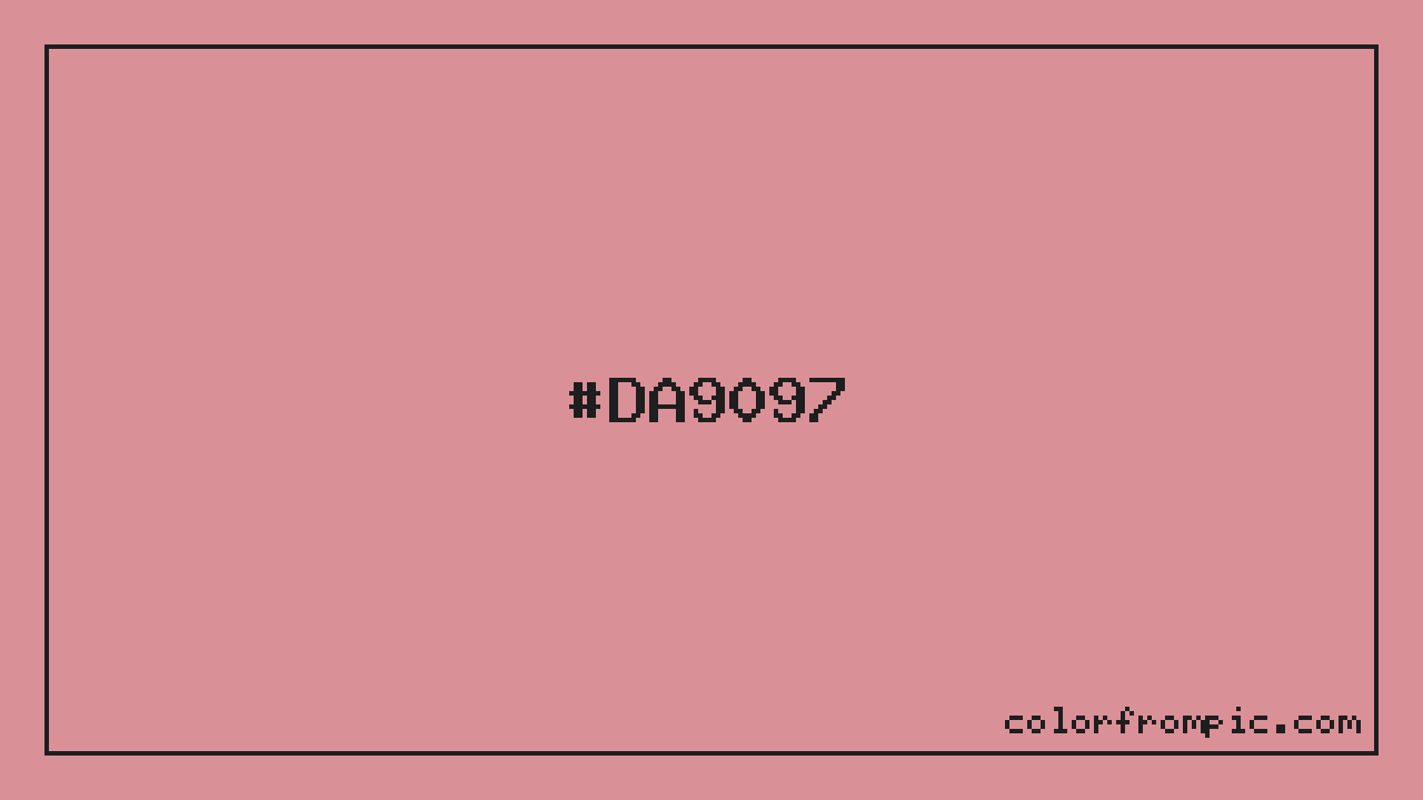 This color works well in various design contexts. As a lighter shade, it's excellent for backgrounds, negative space, and creating a sense of openness in designs. The moderate to low saturation gives this color a sophisticated, muted quality that works well in professional and minimalist designs. When pairing #DA9097 with other colors, consider its complementary color at hue 174° for maximum contrast, or use analogous colors within 30° of its hue for harmonious combinations. The decimal representation of this color is 14323863, which can be useful in certain programming contexts.