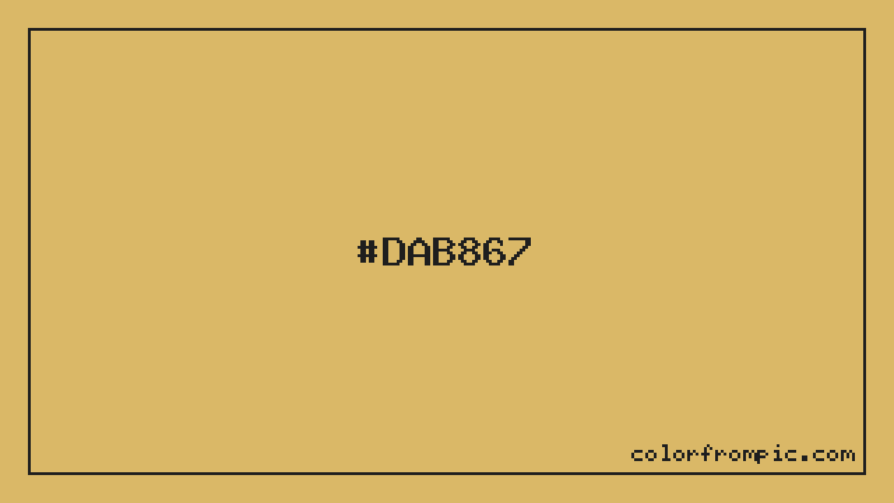 For print applications using the CMYK color model, #DAB867 would be reproduced using 0% cyan, 16% magenta, 53% yellow, and 15% black. The closest web-safe color is #CCCC66, which may be useful for ensuring compatibility across older displays and systems.
