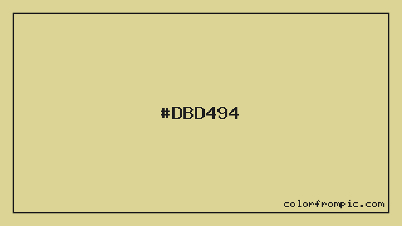 This color works well in various design contexts. As a lighter shade, it's excellent for backgrounds, negative space, and creating a sense of openness in designs. The moderate to low saturation gives this color a sophisticated, muted quality that works well in professional and minimalist designs. When pairing #DBD494 with other colors, consider its complementary color at hue 234° for maximum contrast, or use analogous colors within 30° of its hue for harmonious combinations. The decimal representation of this color is 14406804, which can be useful in certain programming contexts.
