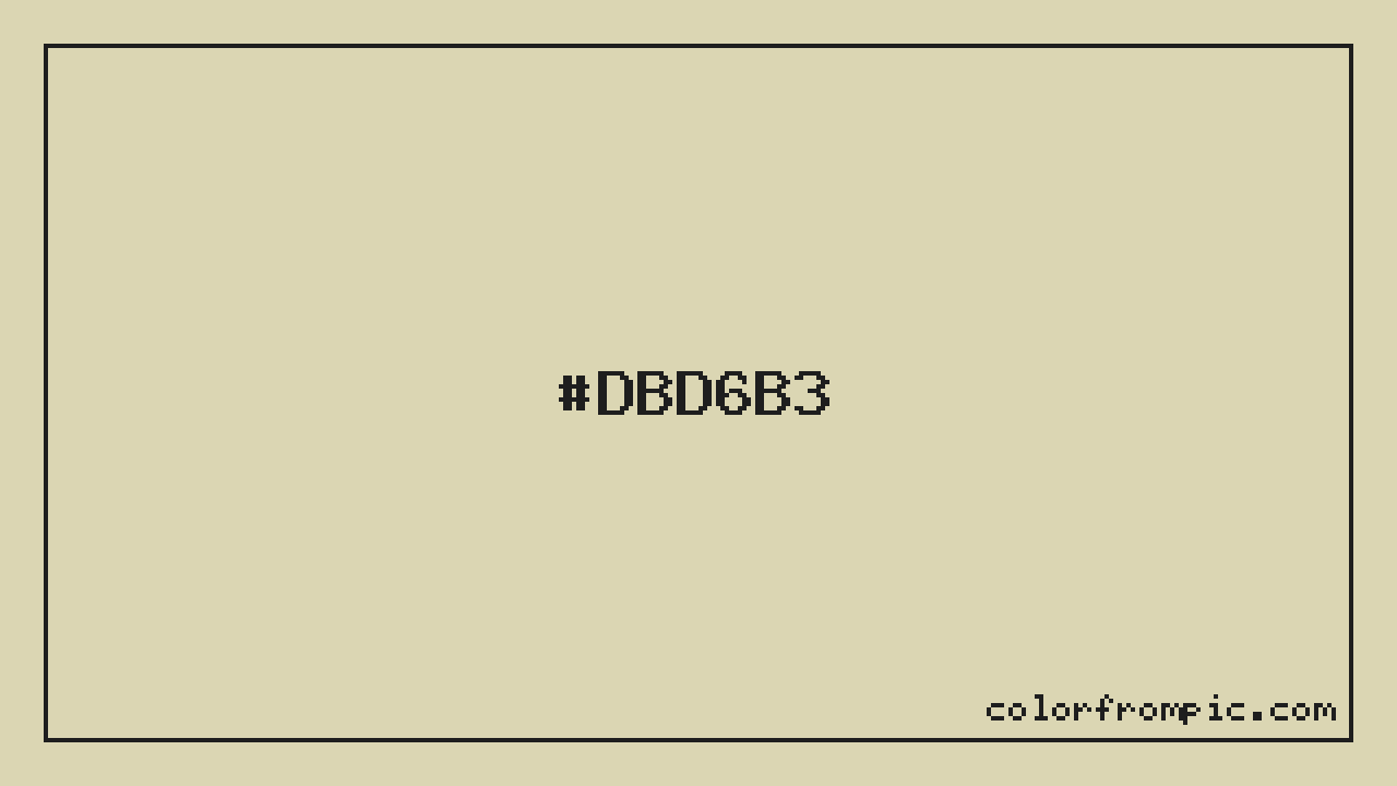 This color works well in various design contexts. As a lighter shade, it's excellent for backgrounds, negative space, and creating a sense of openness in designs. The moderate to low saturation gives this color a sophisticated, muted quality that works well in professional and minimalist designs. When pairing #DBD6B3 with other colors, consider its complementary color at hue 233° for maximum contrast, or use analogous colors within 30° of its hue for harmonious combinations. The decimal representation of this color is 14407347, which can be useful in certain programming contexts.