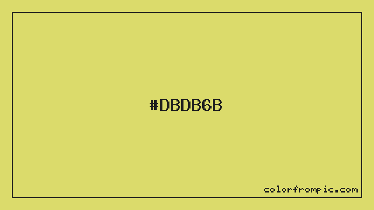 For print applications using the CMYK color model, #DBDB6B would be reproduced using 0% cyan, 0% magenta, 51% yellow, and 14% black. The closest web-safe color is #CCCC66, which may be useful for ensuring compatibility across older displays and systems.