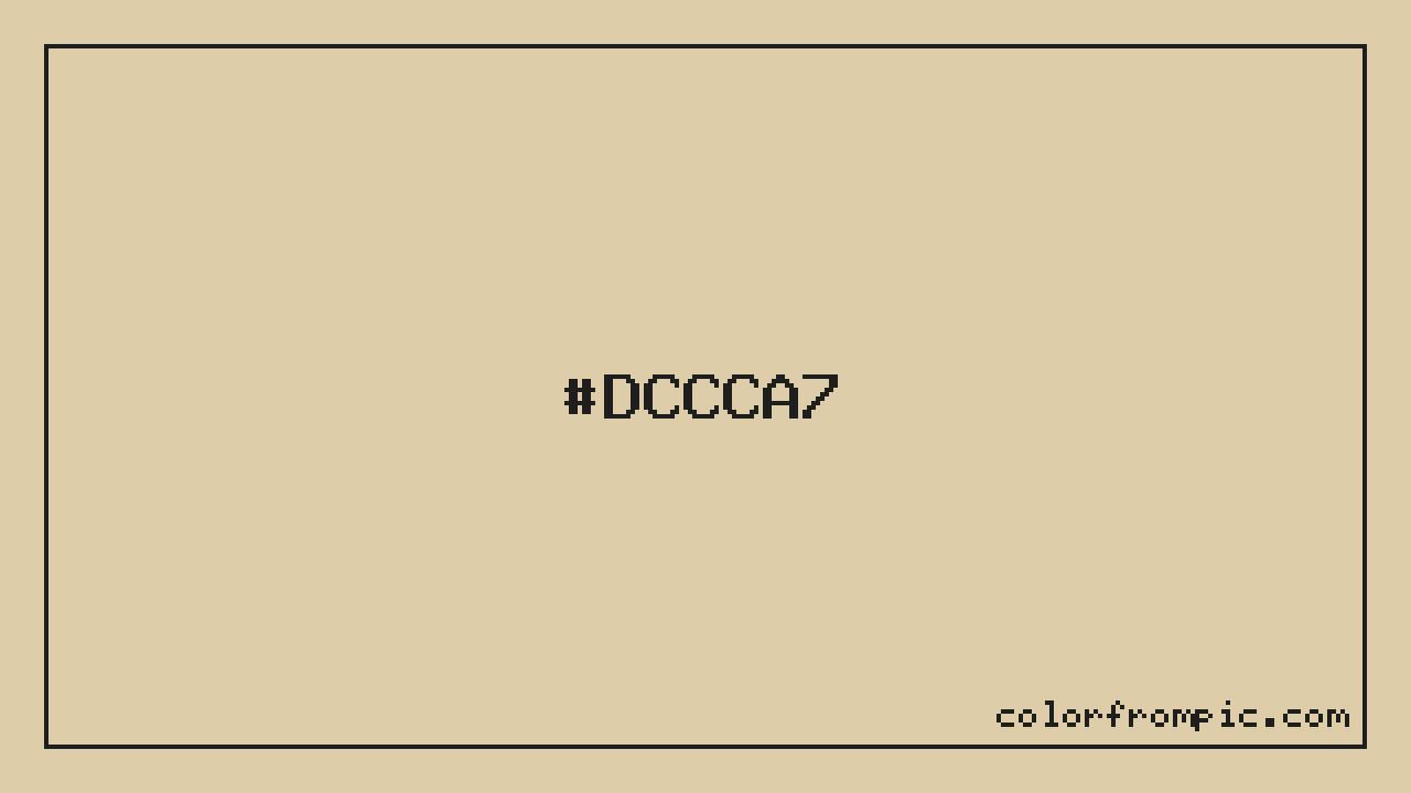 The hexadecimal color code #DCCCA7 represents a light shade in the orange family. In the RGB color model, this color is composed of 220 red, 204 green, and 167 blue, which translates to approximately 86% red, 80% green, and 65% blue. This makes it a slightly desaturated color with warm undertones that can evoke different emotional responses depending on its application.