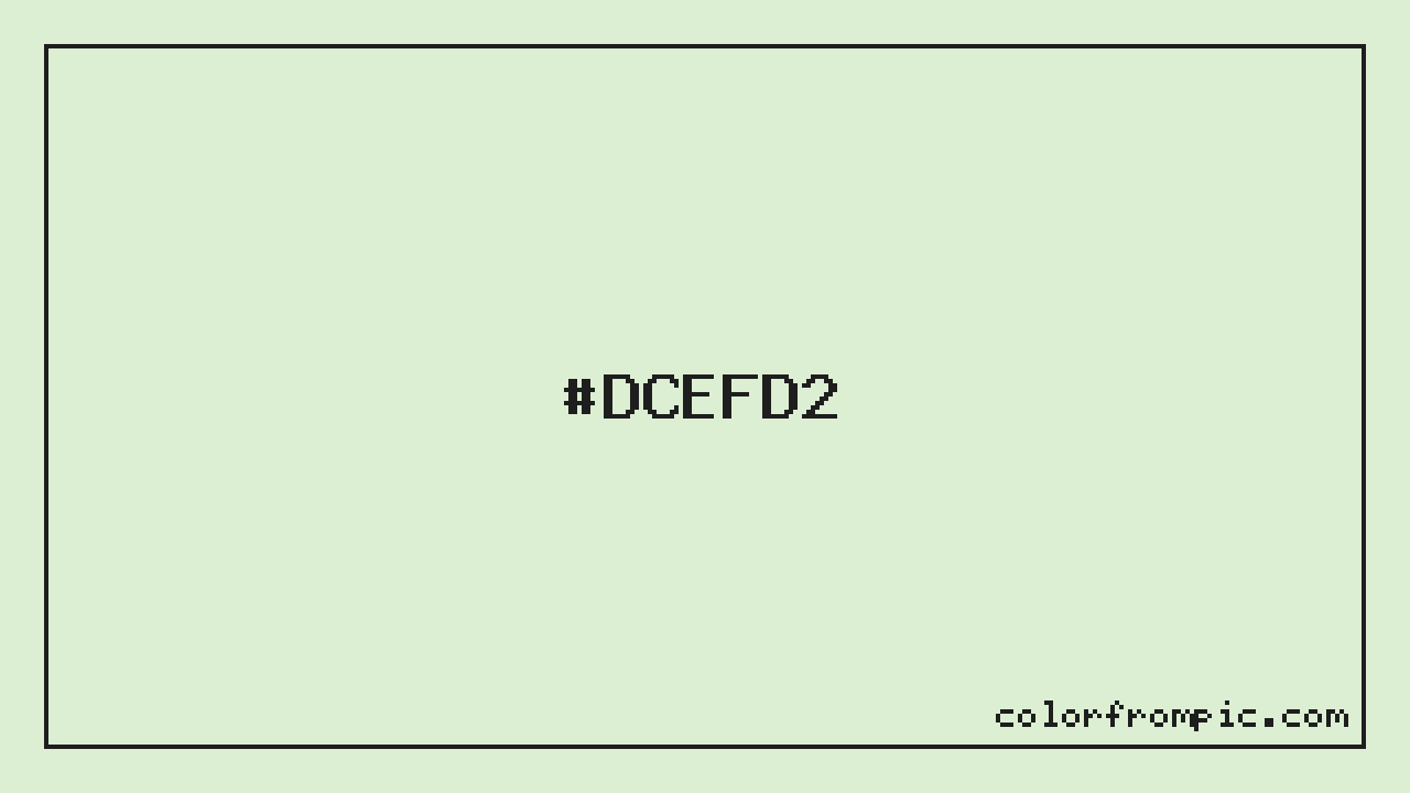 The hexadecimal color code #DCEFD2 represents a very light shade in the green family. In the RGB color model, this color is composed of 220 red, 239 green, and 210 blue, which translates to approximately 86% red, 94% green, and 82% blue. This makes it a slightly desaturated color with cool undertones that can evoke different emotional responses depending on its application.
