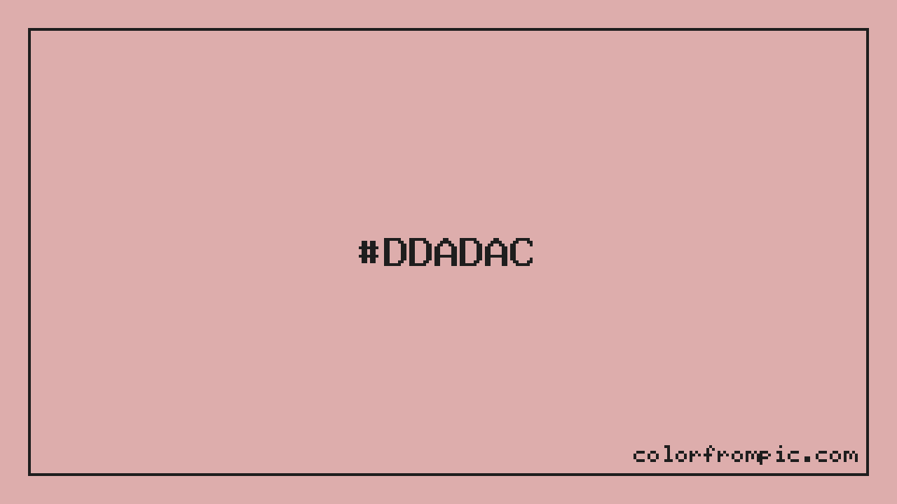 The RGB value of #DDADAC is rgb(221, 173, 172). This means the color contains 221 out of 255 parts red, 173 out of 255 parts green, and 172 out of 255 parts blue. Red is the strongest channel in this color mix. You can use the full RGB function in any CSS property: color: rgb(221, 173, 172);